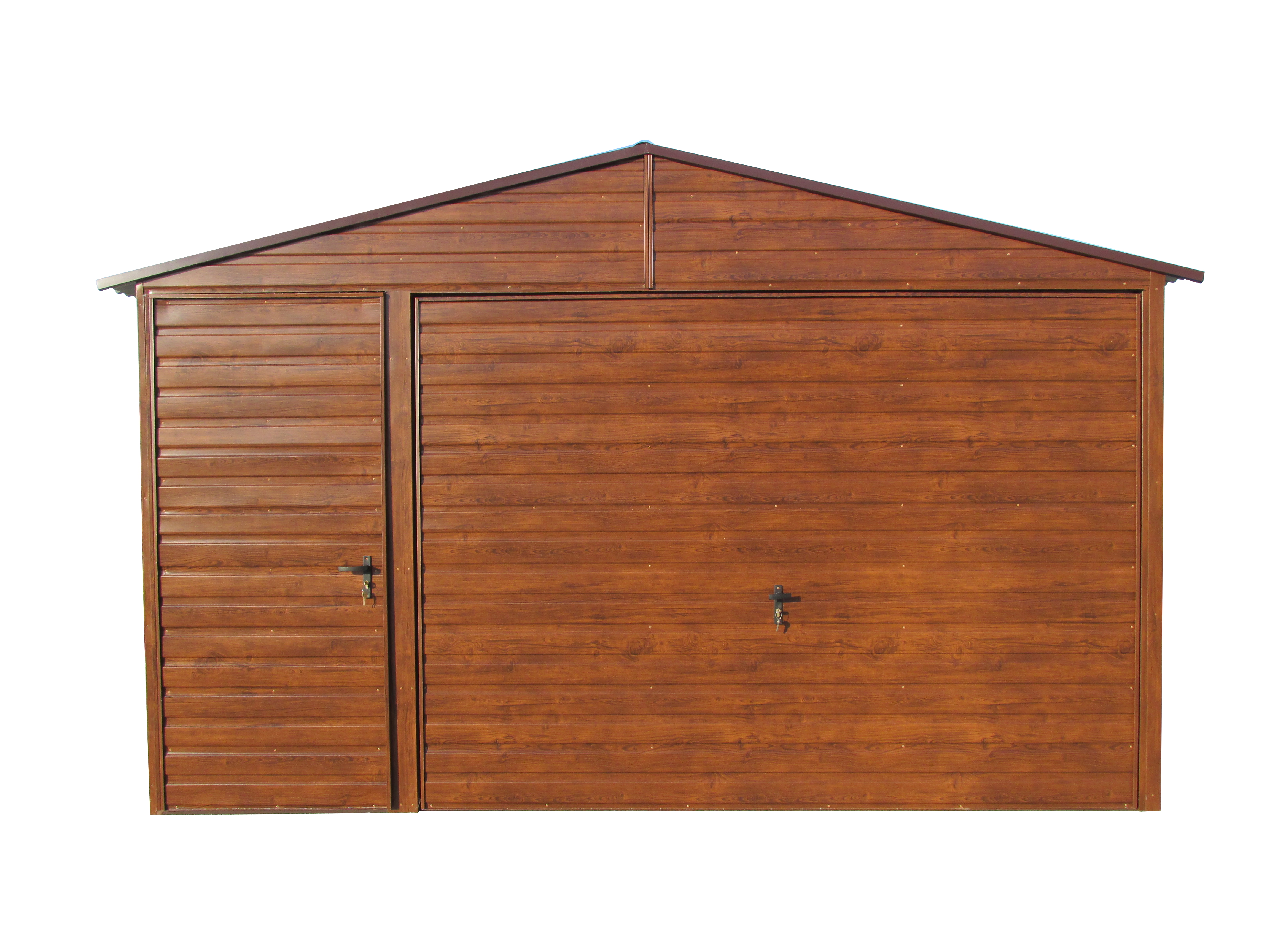 TIK PAS MUS - IŠSKIRTINIS PASIŪLYMAS!!! GARAŽAS 4x6 m 'ALFA' Garažo aprašymas: Puikią garažo išvaizdą užtikrina medžio imitacijos skarda riešuto atspalvio. Sustiprinta garažo konstrukcija užtikrina ilgaamžiškumą. Garažas 4x6 m su dvišlaičiu stogo tipu, pakeliamais vartais ir papildomomis įėjimo durelėmis. Matmenys: - plotis 4 m (3,96 m) - ilgis 6 m (5,96 m) - pakeliami vartai (aukštis 2 m) - įvažiavimo aukštis 1,95 m (galimybė pritvirtinti vartų automatiką) - vartų plotis – 3 m - pilnas aukštis 2,70 m - šoninės sienos aukštis 2,125 m - durelių plotis 0,90 m - durelių aukštis 2m - šoniniai apkaustai RIEŠUTO arba AUKSINIO ĄŽUOLO atspalvio - stogo apkaustai stogo skardos spalvos - akrilinė trapecinė skarda, I rūšis, RIEŠUTAS arba AUKSINIS ĄŽUOLAS - stogo skarda PROFILIUOTA GRAFITO spalvos (galima rinktis ir kitą spalvą iš spalvų palėtės)