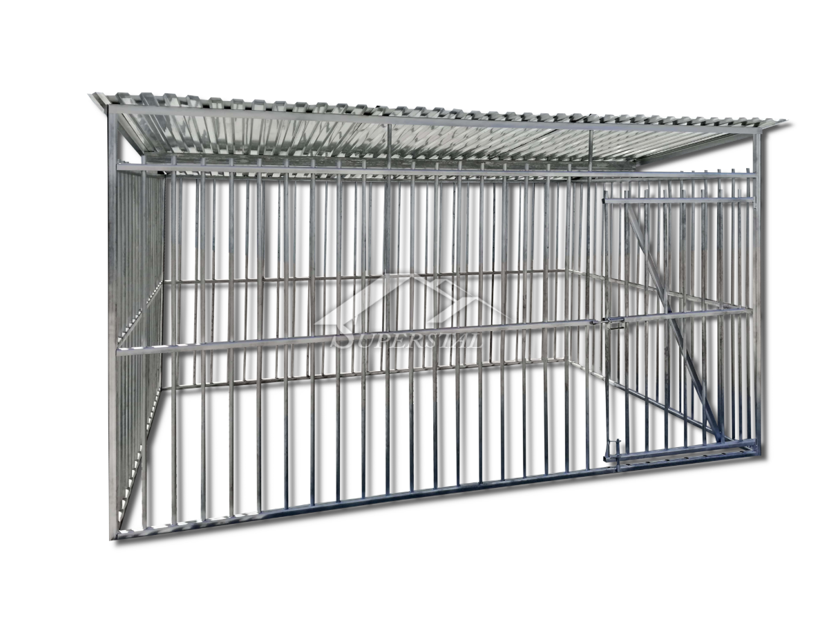 Voljero sienos yra pagamintos iš cinkuotų profilių išdėstytų vertikaliai. Konstrukcija yra susukama varžtais. Stogas yra iš karštai cinkuotos trapecinės skardos. Voljeras turi horizontalų sustiprinimą, dėl to yra stabilus ir patvarus. Atstumai tarp strypų yra apie 8,5cm. Kai kurie konstrukcijos elementai yra virinami, suvirintos vietos yra necinkuotos.