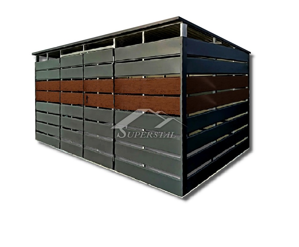 STOGINĖ KONTEINERIAMS 4X3 IŠ HORIZONTALIŲ PLAČIŲ PANELIŲ su skardos intarpu Riešutas