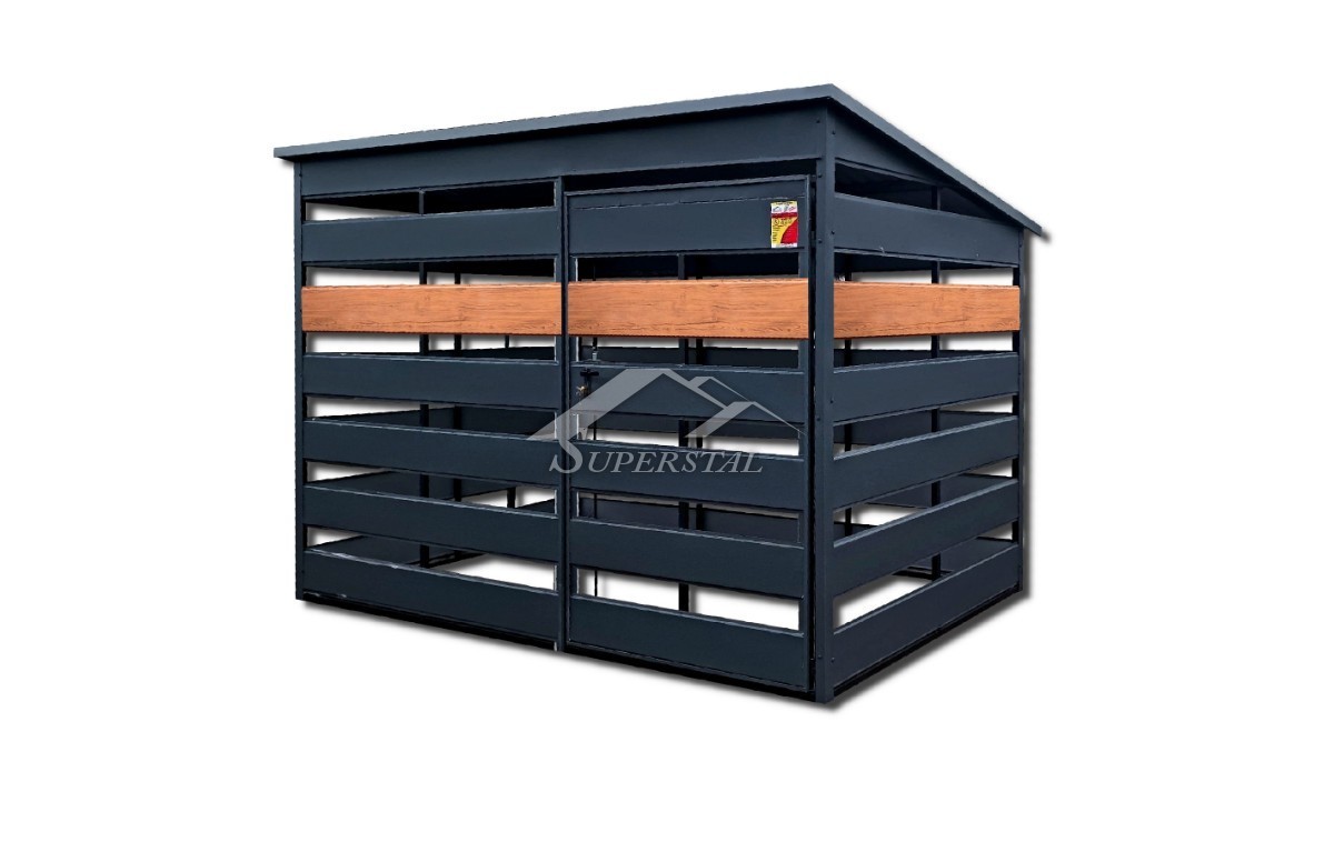 STOGINĖ KONTEINERIAMS 2X2 IŠ HORIZONTALIŲ PLAČIŲ PANELIŲ su skardos intarpu PUŠIS