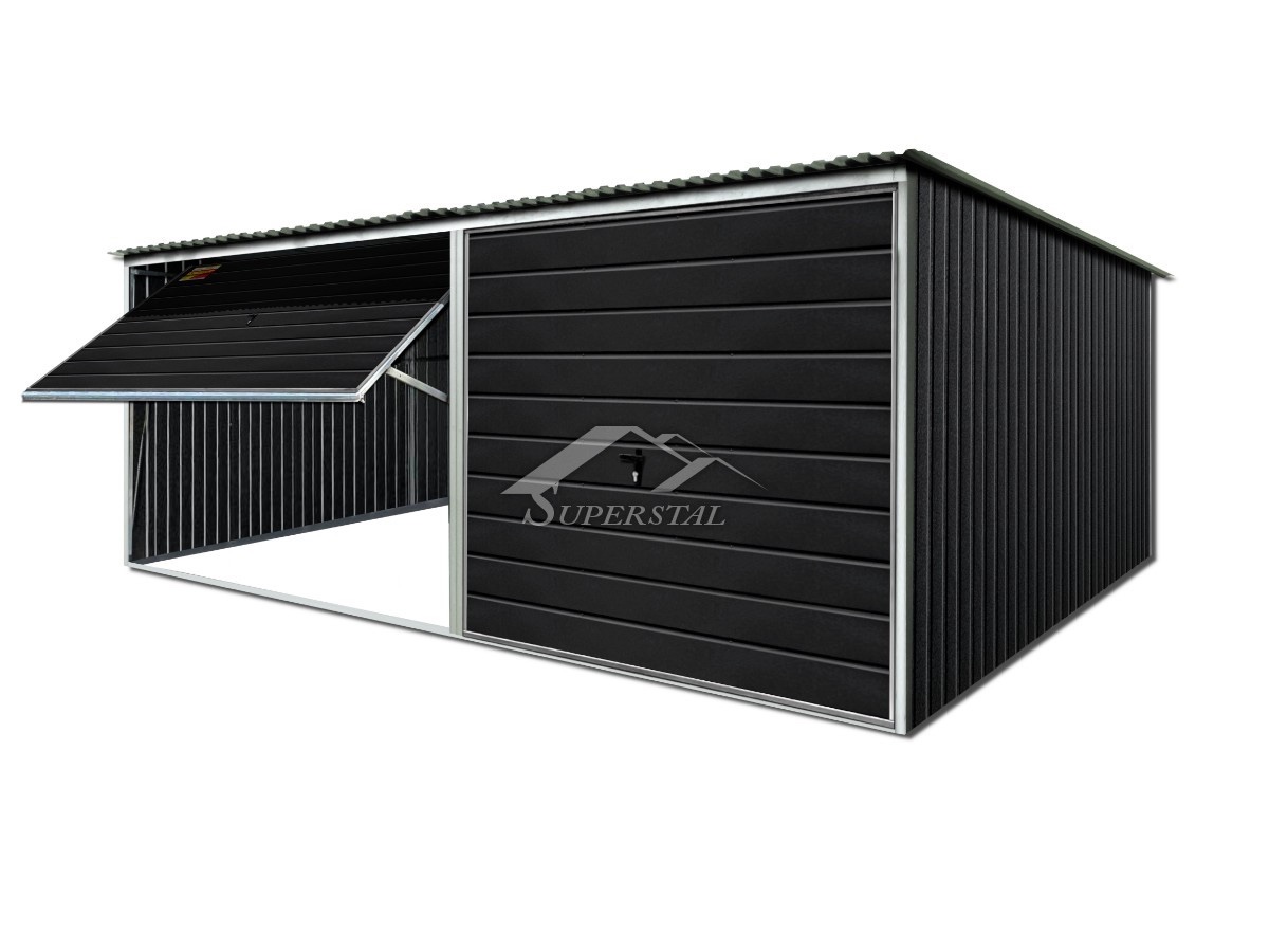 GRAFITO SPALVOS SKARDINIS GARAŽAS LUX 6x6 – STOGO NUOLYDIS Į GALĄ, PAKELIAMI VARTAI Jei ieškote modernaus dizaino ir dėmesio mažiausioms detalėms – geresnio pasiūlymo nerasite! Siūlomas produktas – inovatyvus LUX serijos skardinis garažas, kurio matmenys 6×6.