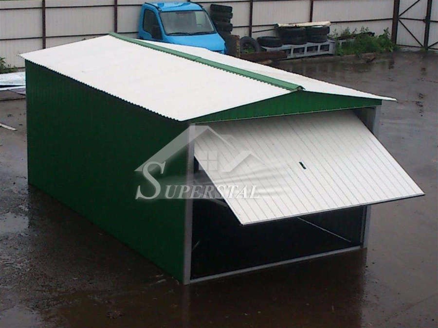 Garažo konstrukcija gaminama iš šaltojo lenkimo būdu formuojamų kampainių ir C profiliuočių, kurie padengti gruntiniu laku. Viskas padengta mėtų RAL 6029 spalvos akriline skarda, kuri prie konstrukcijos tvirtinama aliuminio kniedėmis.